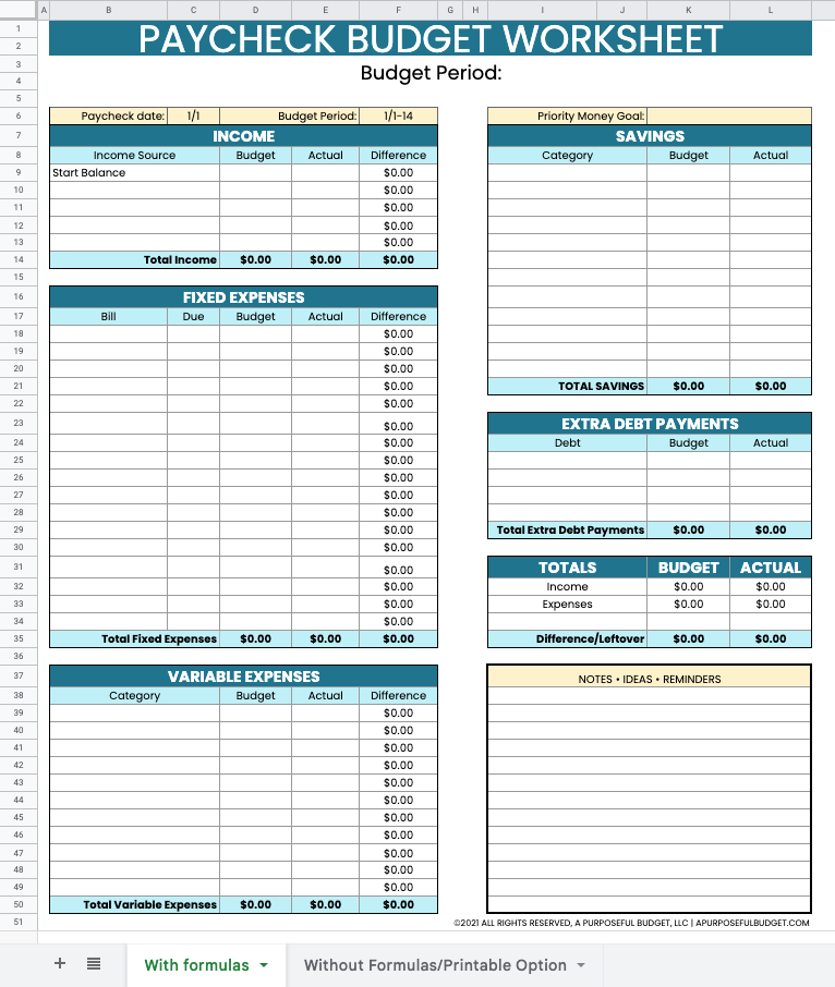 Here is the link to the APB Paycheck Budget Worksheet. Clicking on the link will prompt you to make a copy. I suggest saving a master copy for yourself should you decide to use it in the future.